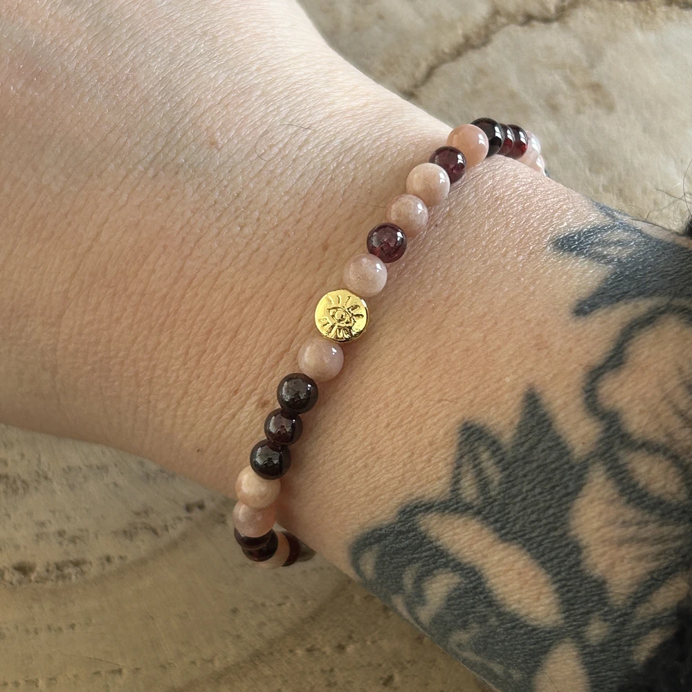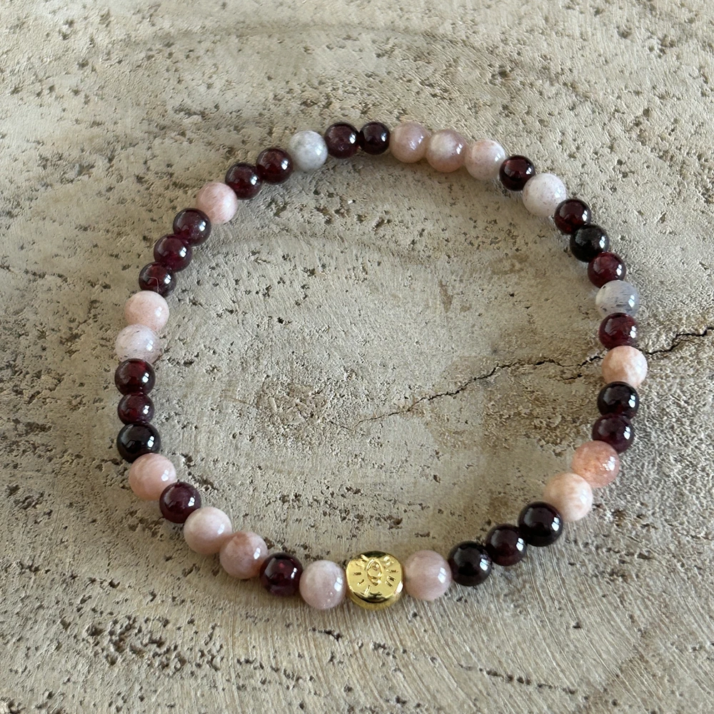 Optez pour un bracelet qui allie l’énergie positive de la pierre de soleil et l’énergie d’ancrage du grenat.