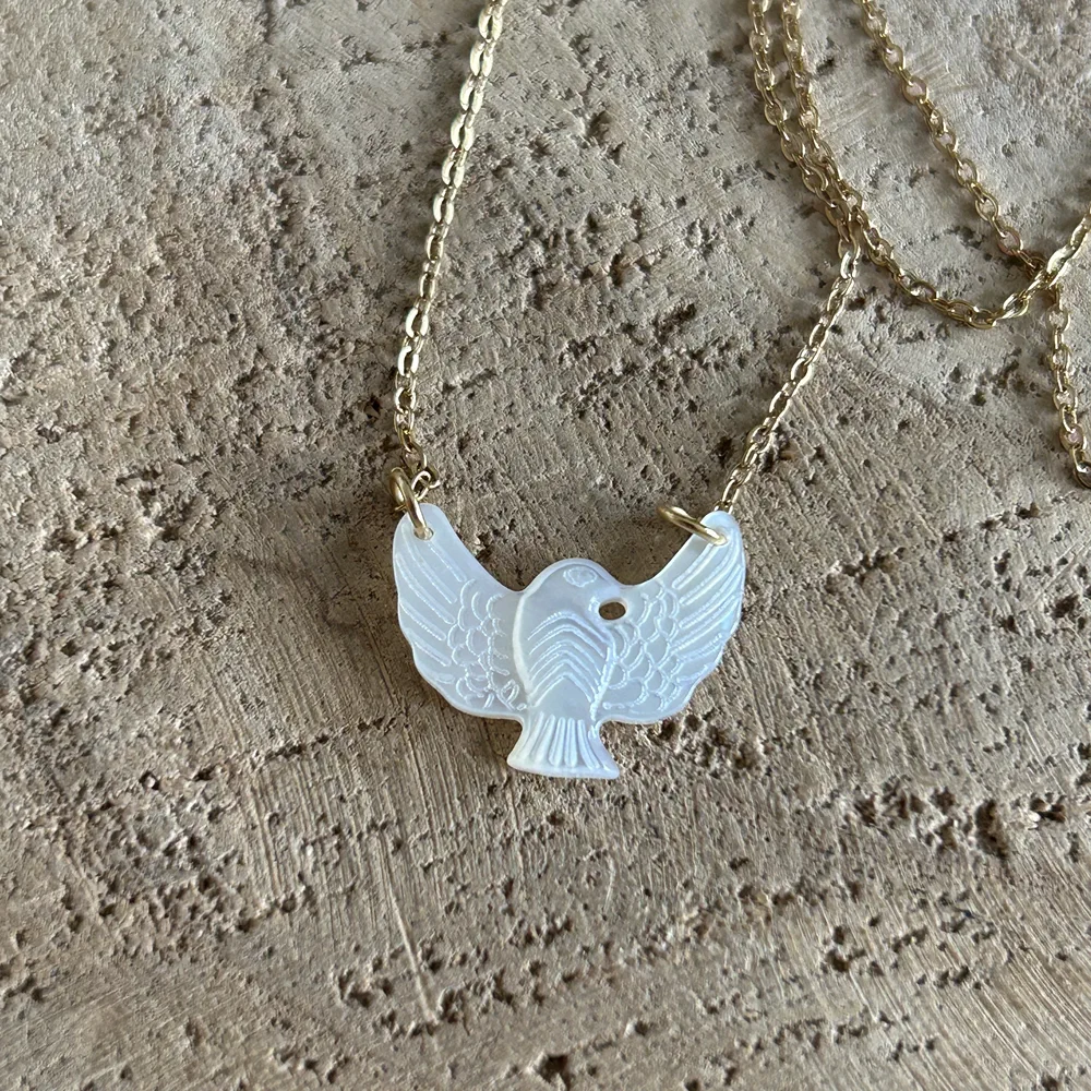 Collier délicat avec un colibri en nacre finement sculpté, symbole de joie, légèreté, résilience et amour de l’instant présent. Un bijou lumineux et poétique, parfait pour inspirer positivité, douceur de vivre et énergie bienveillante au quotidien.