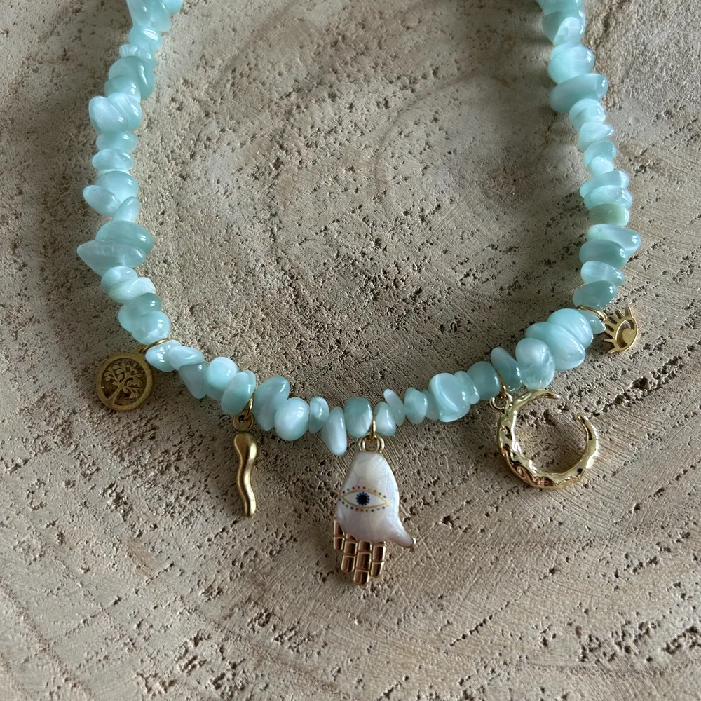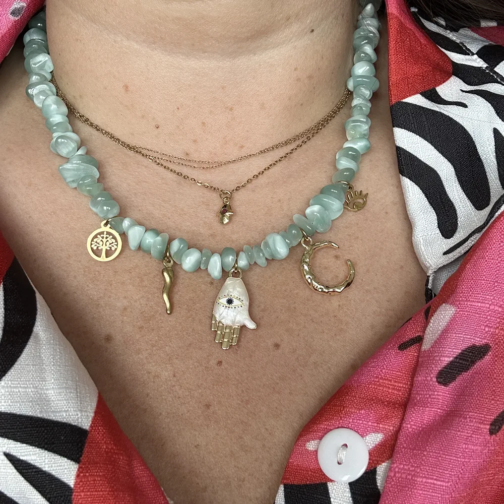Collier « Jade Mystic » en perles de verre, grigris de protection