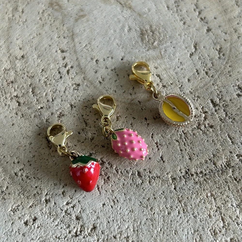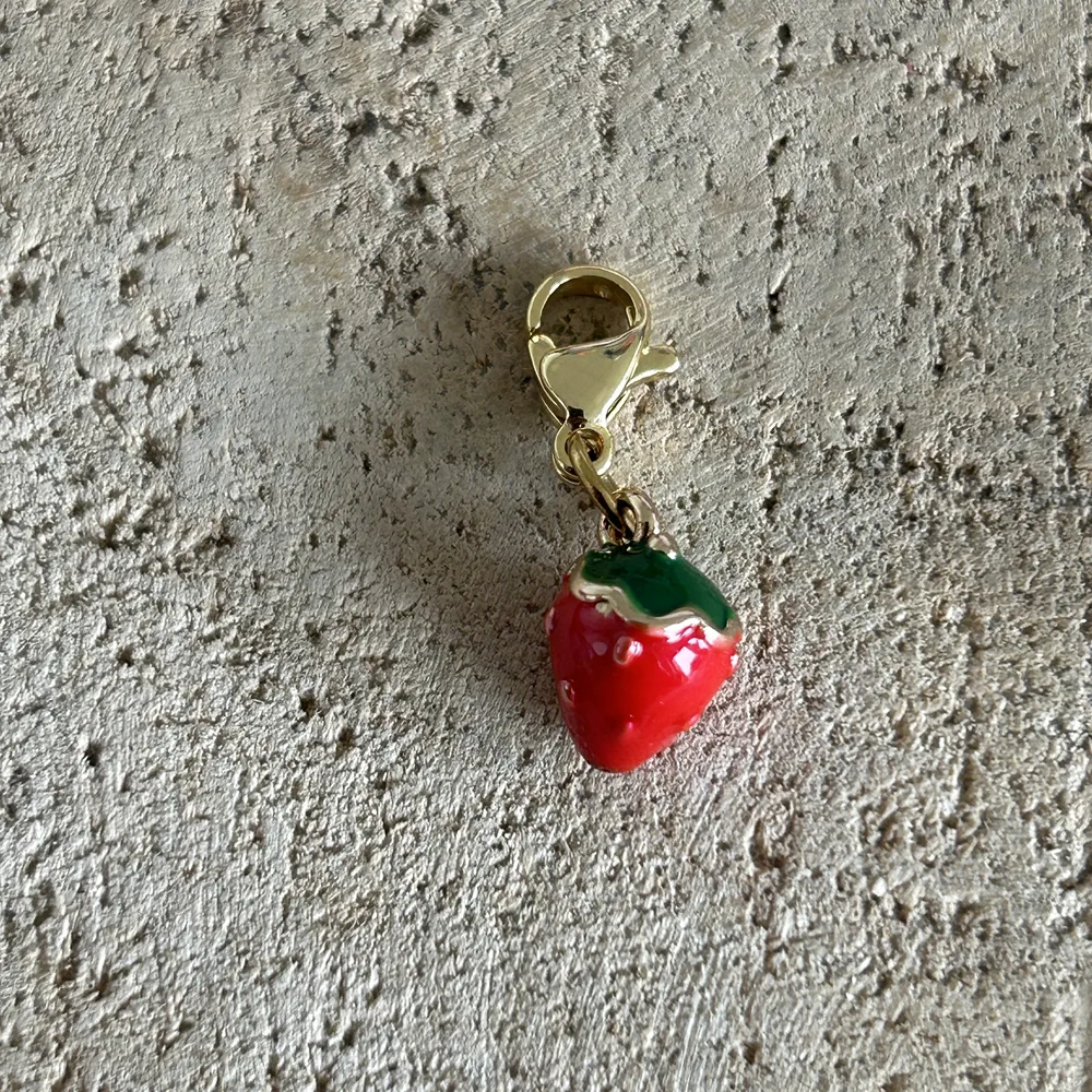 Donnez une touche de couleur et de pep’s à vos bijoux avec ce charm original en forme de fraise gourmande.